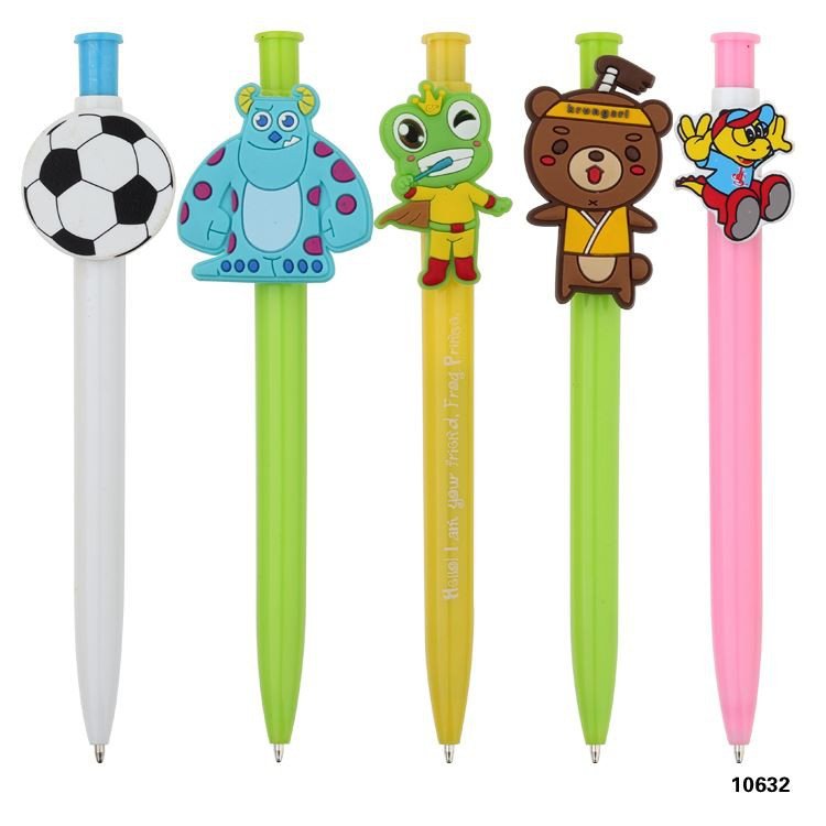 Click action plastic novelty shape pen, solid colored barrel, solid white button, customized shape clip, plastic cross refill.