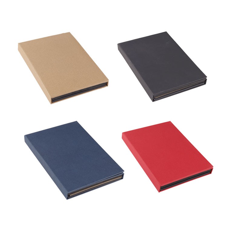 Eco friendly Sticky Notepad. Color kraft cover, product size is 15x21cm. Left with a 15cm wooden ruler, a paper ballpen, a wood pencil sharpner, a white eraser and two long round pencils. Middle with 50 sheets 70gsm paper with 1c print. Right with 5 colors 25 sheets PET sticky notes, size is 4.8×1.2cm and one big yellow sticky notes, size is 7.3×7.3cm, a transparent 10cm pp ruler.