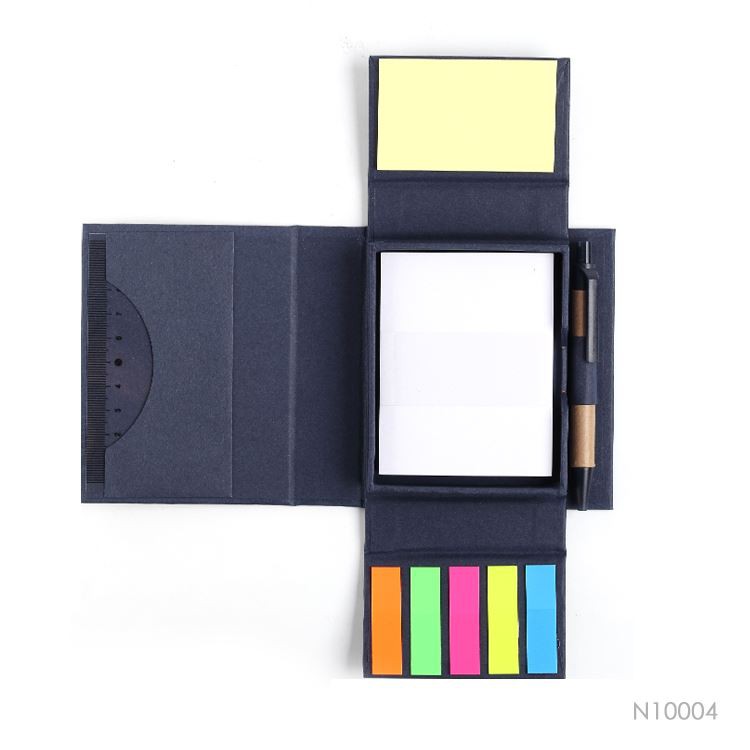 Craft paper hard cover sticky note set with ECO pen and ruler. 25 sheets pet sticky notes ,100 sheets 70gsm blank notes.