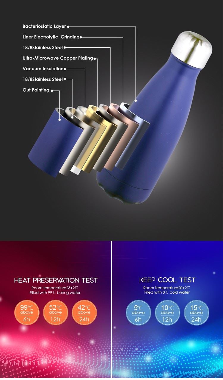 Stainless Steel Vacuum Insulated Reusable Water Bottle With Cork Bottom, Double Wall Cola Shape Thermos Flask.